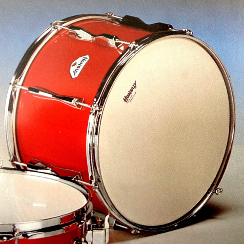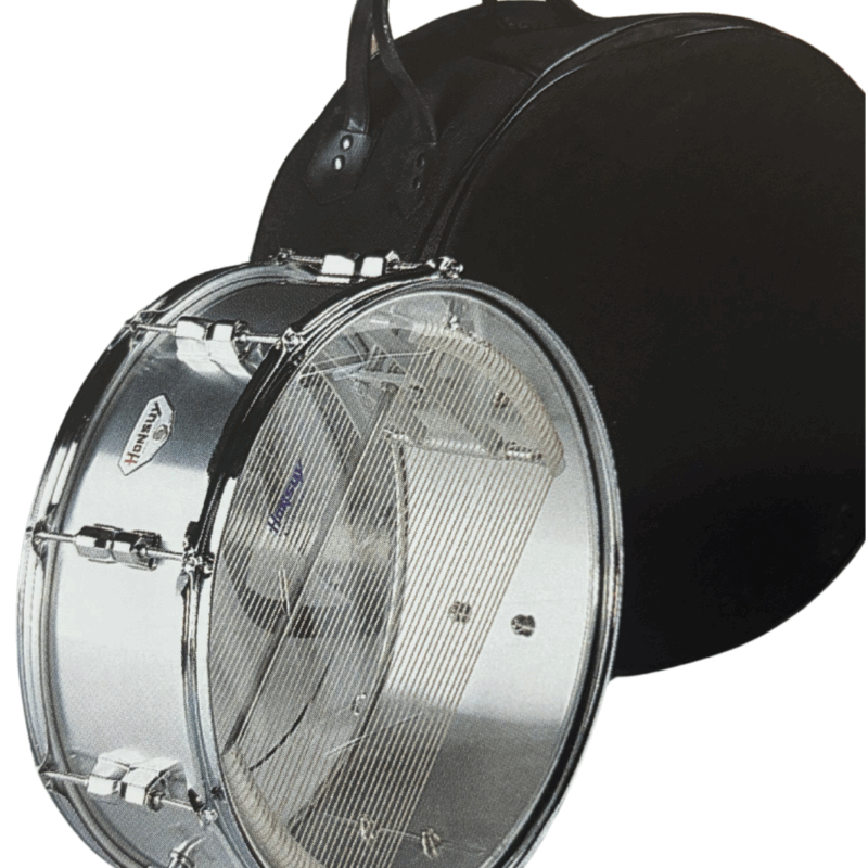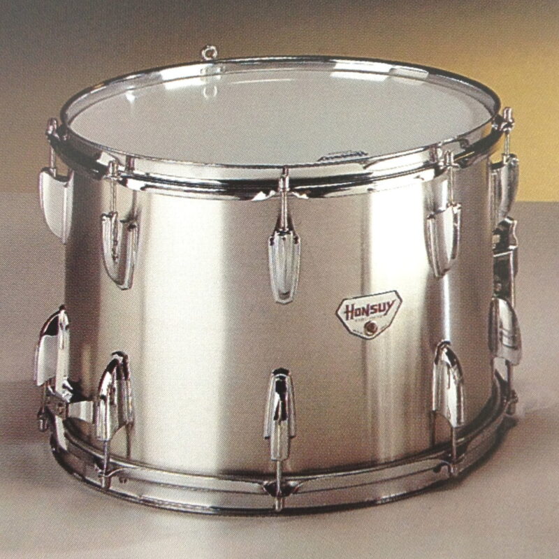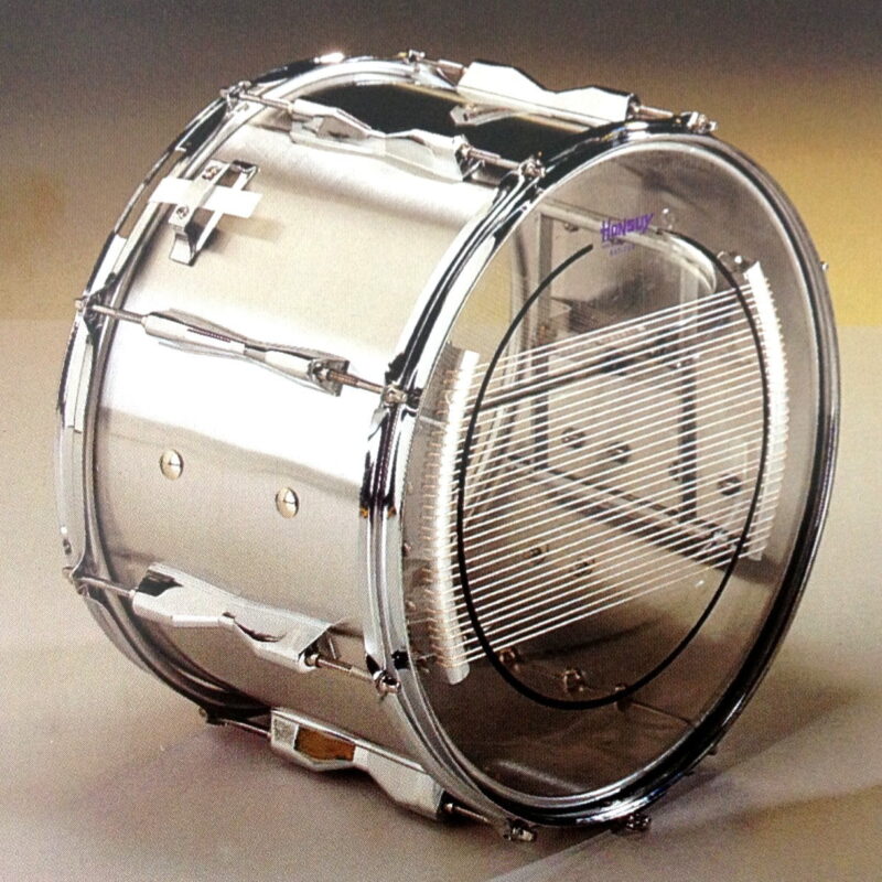 - Aros metálicos acorazados- Casco de madera, forrado de aluminio o celuloide- Tensión independiente.- Cromado brillante.- Parches de plástico