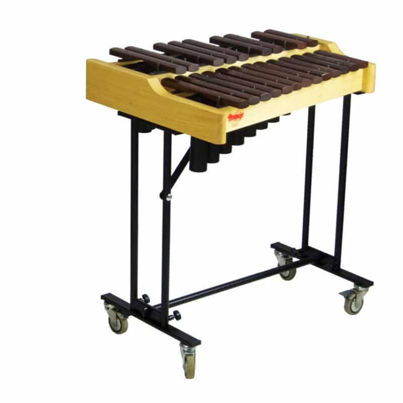 - Extensión: do a la. 1 1/3 octavas. - 22 teclas de madera de palosanto de 32x18mm. - Cromático. - Bastidor de madera maciza. - Tubos de resonancia de aluminio. - Soporte con 4 ruedas direccionables. - Regulable en altura. - Con 1 par de mazas- Medidas: 61cm. x 48