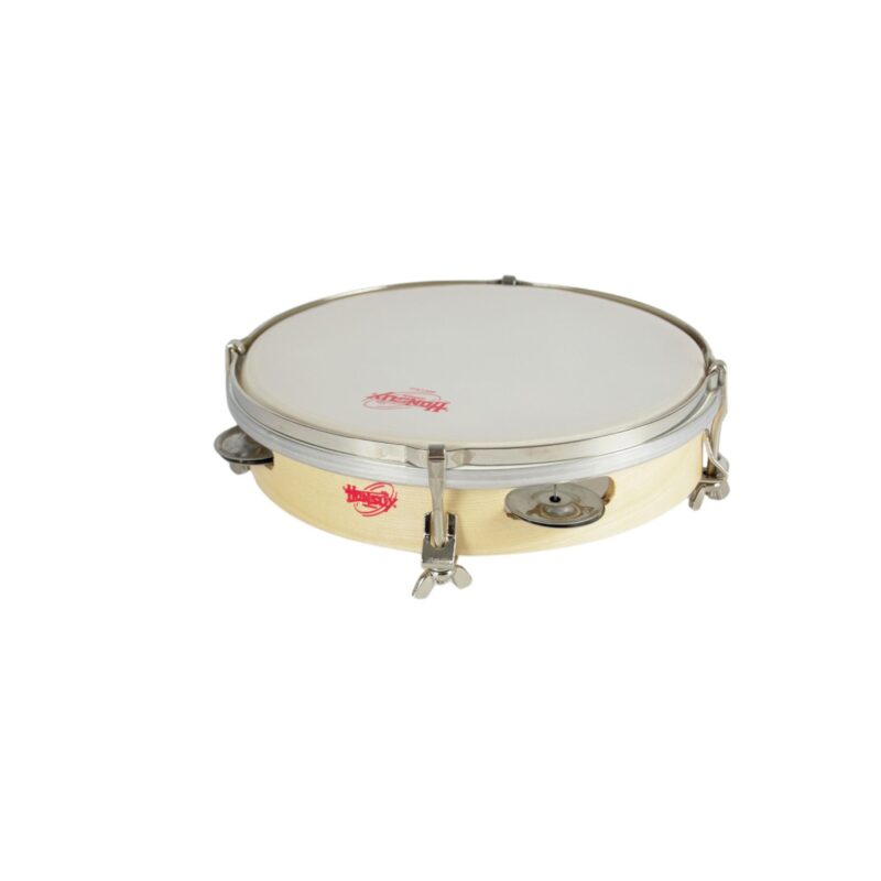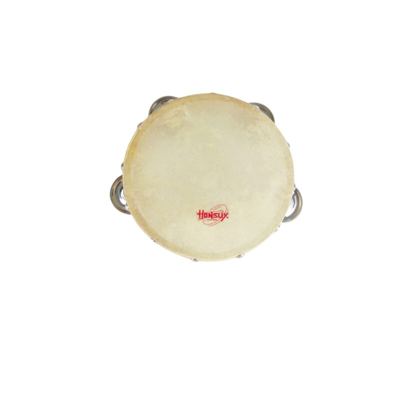 PANDERETA 15 cm. Parche piel claveteado, doble sonaja