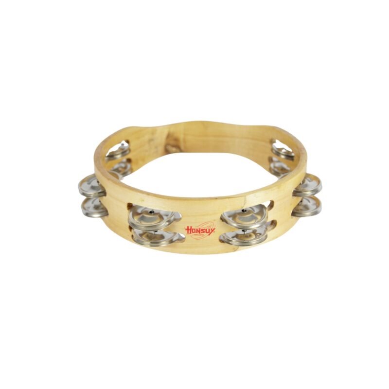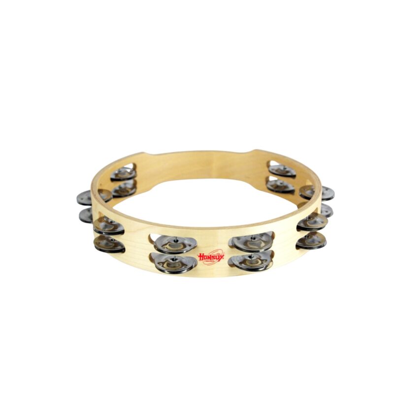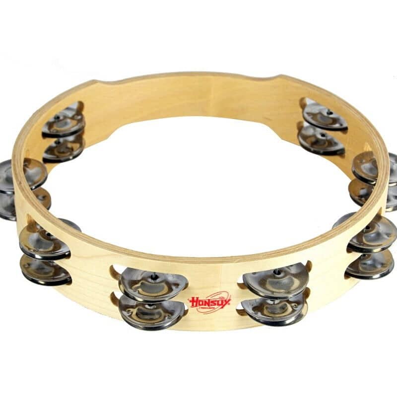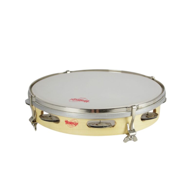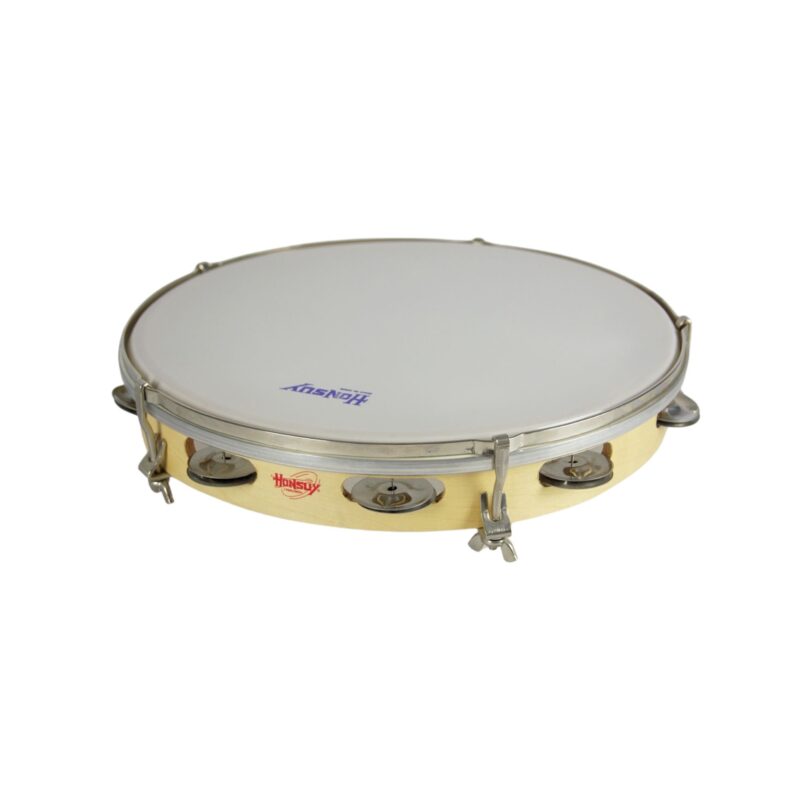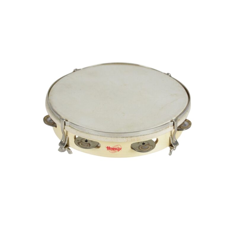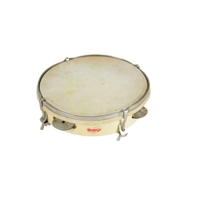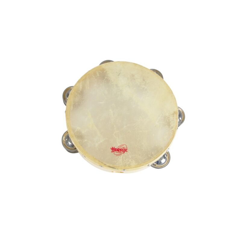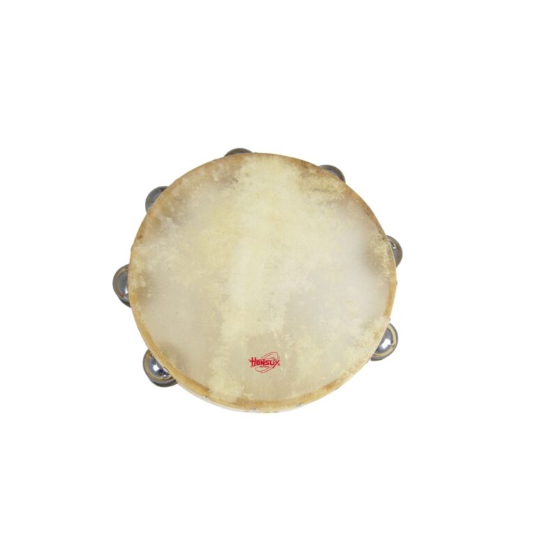 PANDERETA 25 cm. Parche piel claveteado, doble sonaja.