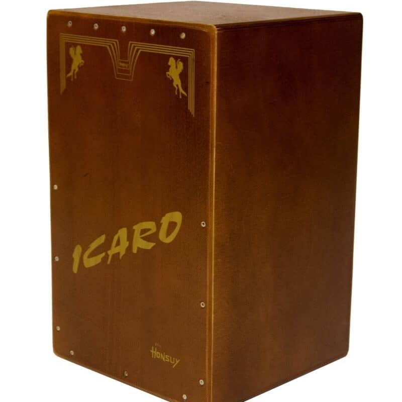- Chasis de madera de abedul lacado en nogal mate.- Tapa de Haya tintada en tono nogal mate.- Montaje de 6 bordones en V en su interior para reforzar los agudos.- 3 serigrafias. Dos en la parte de la tapa y otra en la parte trasera del cajón.- Patas de